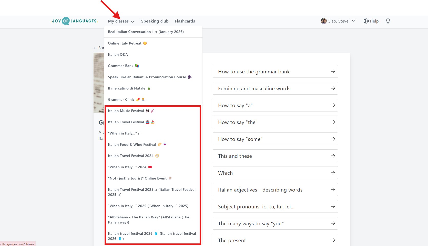 There are usually 3–5 weeks between each term, giving students time to catch up and get ready for the next course. If you’re already caught up, it’s a great opportunity to explore all the other fantastic materials included in your online Italian school membership 💃